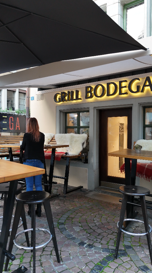Der einladende Aussenbereich der Bodega signalisiert bereits von weitem: Hier wird Genuss großgeschrieben. Ein stilvolles Willkommen für alle, die gutes Essen und gesellige Momente schätzen – eingefangen in authentischer Atmosphäre.